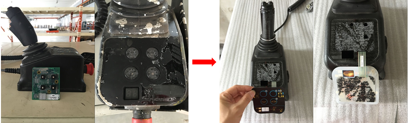 b、手柄采用霍爾技術(霍爾開關),冗餘設計,面闆按鍵采用覆膜開關。