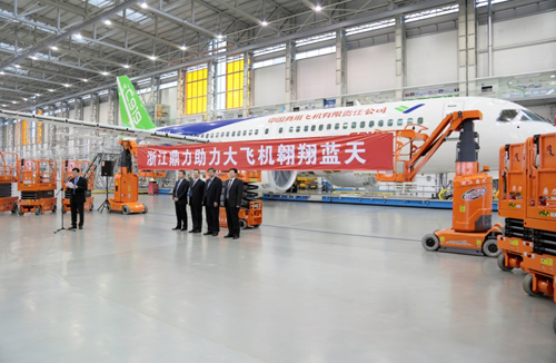 鼎力機械LOGO的智能高空作業平台緩緩将嘉賓送到高台時,浙江的小夥伴們高聲尖叫,這個設備是浙江造呀!