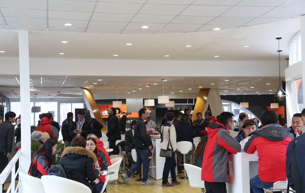 在洽談區,來自不同國家、不同語言的參觀客戶彙聚一堂,人流如織。