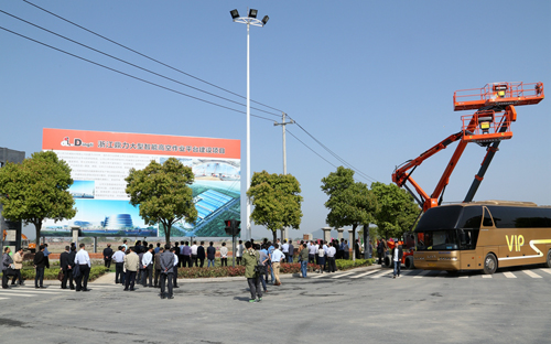 鼎力董事長許樹根就項目具體情況作了詳細介紹:項目耗資10億元人民币,占地面積362畝,總建築面積17萬平方米。項目遵循工業4.0新模式,采用世界一流生産設備和流水線,重點研發和生産大型智能高空作業平台,預計2019年建成投産。
