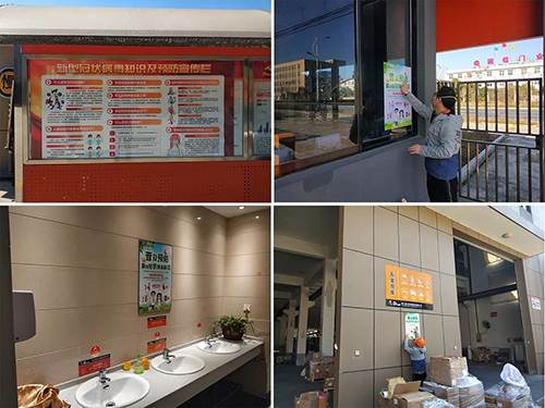 為保障員工身體健康,春節期間,宣傳部門便加班加點在各個廠區拉起防疫工作橫幅,張貼疫情防範的注意事項,行政區域、公司食堂、各個車間防疫相關内容随處可見。