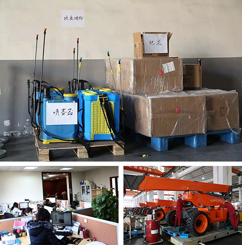 外銷部全球采購空運口罩測溫槍、财務部提前上班确保正常收付款、設備保障部提前檢修生産流水線、采購部員工自告奮勇采購消毒液、售後服務部及技術信息部開展線上培訓、電氣部加班加點做測試在全司上下多部門的聯動下,浙江