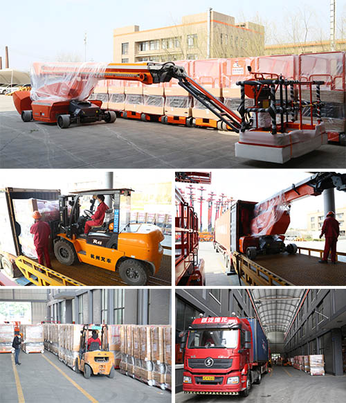 本月23日以來,每天都有10餘個集裝箱批量發往海外,包括臂式和剪叉,主要發往歐美國家。