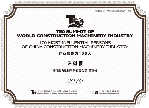 浙江鼎力董事長許樹根上榜2019中國工程機械産業影響力100人。值得一提的是,許樹根先生已連續多年上榜,從未間斷。