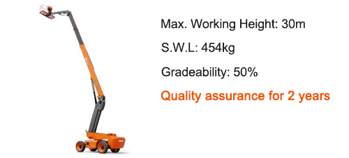 上述鼎力的10款臂式産品,直臂式最大負載能力可達454kg,曲臂式最大負載能力可達300kg,是業内30米工作高度下高負載能力中的佼佼者。