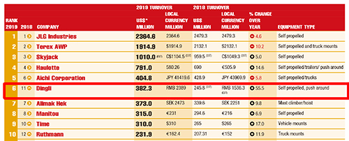 全球第6,鼎力攜手中國 高空作業平台制造商集體登榜M20!