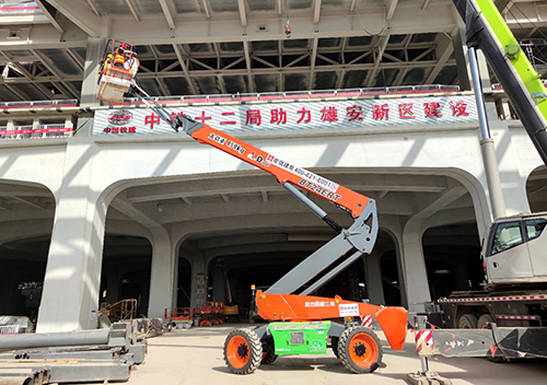 當前,使用新能源驅動的工程機械設備已經成為北上廣深等衆多一線城市創建綠色工地的重要抓手,宏信建發作為國内建設領域最大的設備綜合運營服務商,已在全國範圍内加速推廣綠色設備,電動臂式高空作業平台便是其中之一。
