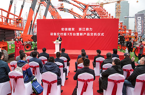 此次展會,鼎力實現全電動的系列産品全軍出擊,包括最大工作高度覆蓋24.3~30.3米,最大荷載454kg,與發動機臂式系列同平台研發,采用家族式模塊化設計的7款大載重電動臂式系列;以及起升、行走雙交流的終極剪叉AC、HA系列,目前全封閉式的交流系統已覆蓋全高度剪叉設備,且具備更防水、更高效、更安全的顯著優勢。 鑒于鼎力新品的獨特優勢,展會首日,宏信建發&浙江鼎力設備交付超3萬台暨新産品交機儀式活動盛大舉行,引起業内巨大轟動! 2 差異新品
