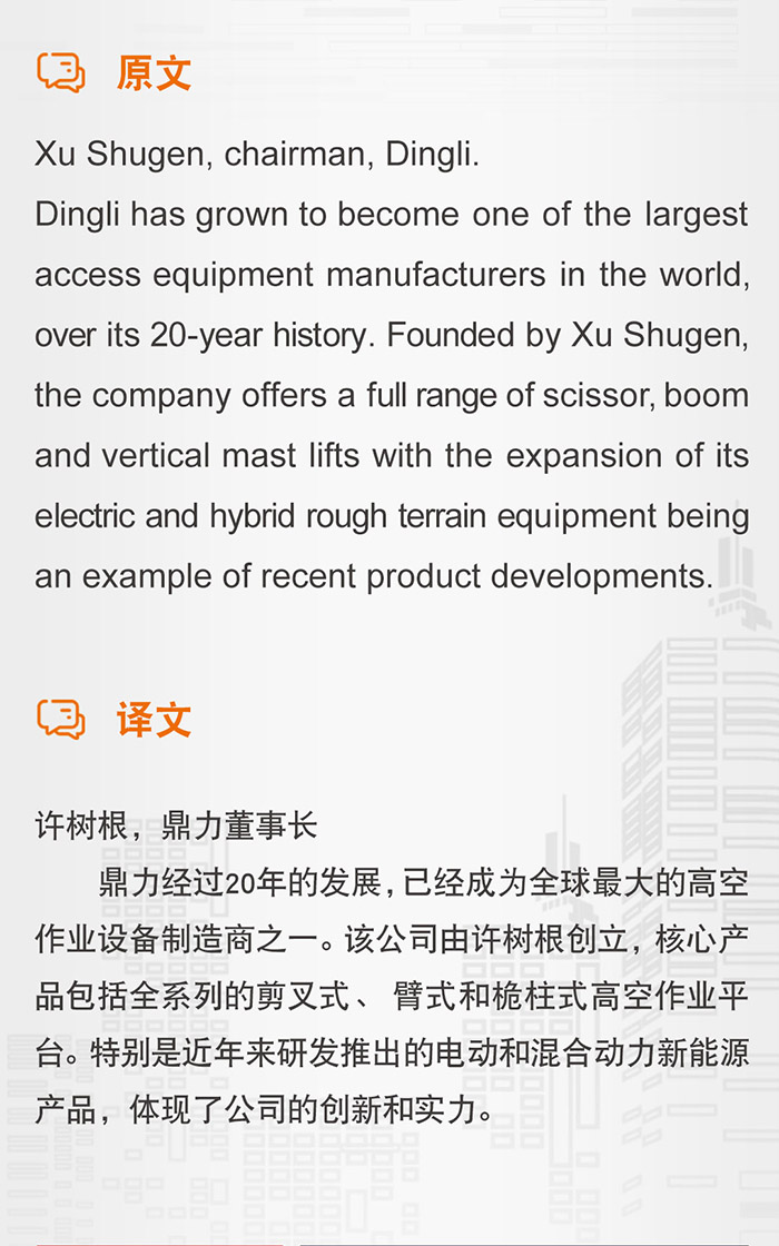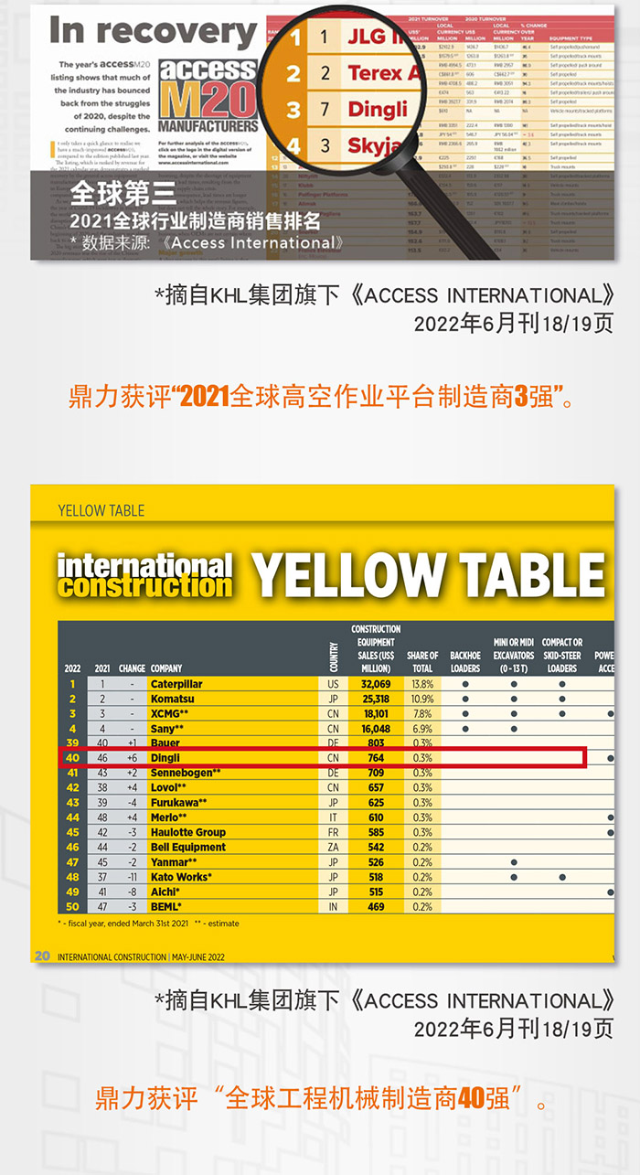 全球高空作業平台制造商3強,以高空作業平台單項榮登全球工程機械制造商第40位。