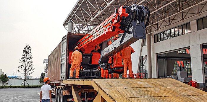 3、小臂變幅角度240°,可回勾,平闆車運輸可最大化釋放多餘空間,提升富餘貨運能力,且整機适用于标準集裝箱運輸。