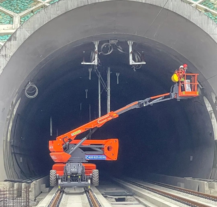 在大型基建項目中,軌道運輸是提升效率的關鍵。鼎力軌道高空車專為隧道内作業設計,具備400kg荷載能力、12km/h的行駛速度,可快速完成設備轉運和人員輸送,适應複雜施工環境。